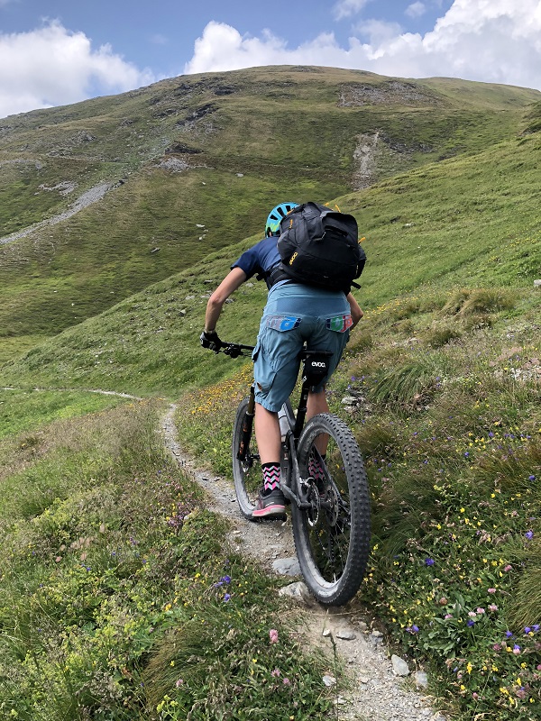 In den letzten ein bis zwei Jahren ist Bikepacking immer mehr in Mode gekommen. Anbieter wie Ortlieb oder auch Apidura bringen ausgefeilte Taschen für den Sattel oder den Lenker auf den Markt. Sie eigenen sich aus meiner Sicht aber nicht für einen Alpencross mit einem Fully: gerade bei Abfahrten auf Trails wird das Handling des Mountainbikes mit einer Tasche unter dem Sattel schwerer, das Fahrrad ist ggf. gerade auf einem engen Trail nicht mehr so agil. Auch muss man bei schweren Taschen ggf. noch mal das Fahrwerk anpassen. Und einige Alpencross-Routen sehen sogar Tragepassagen vor. Da ist ein Rucksack ideal.